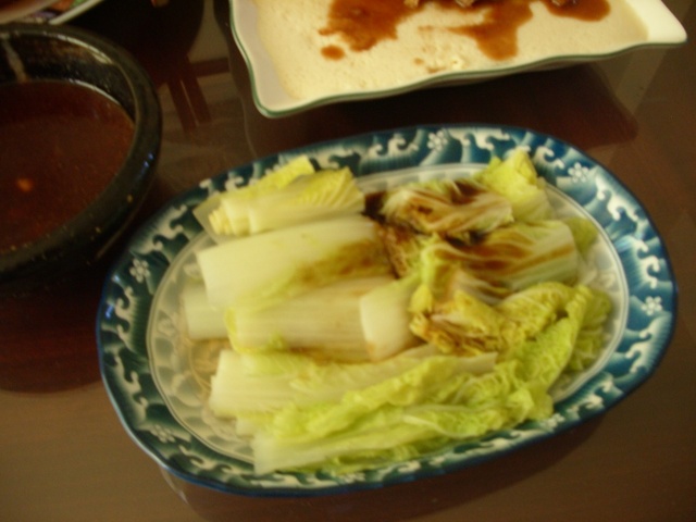 小菜: 水煮小白菜 柴魚高湯川燙後撈起,淋上醬油膏就完成