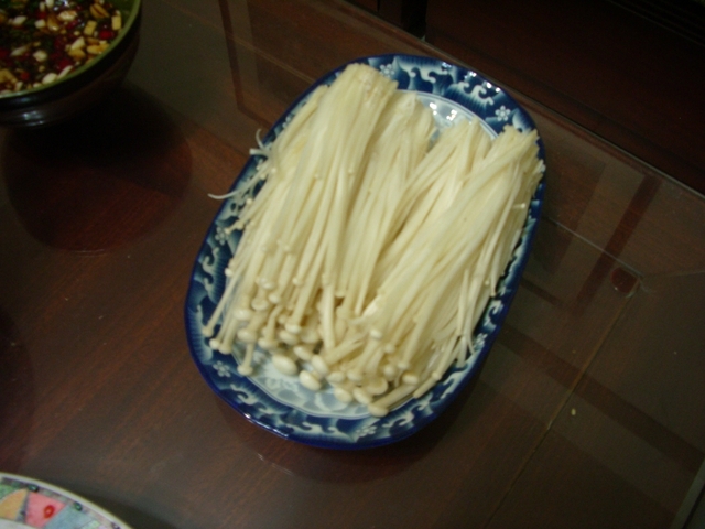 稍微清洗後 將香菇和杏包菇切片 去除金針菇的尾端