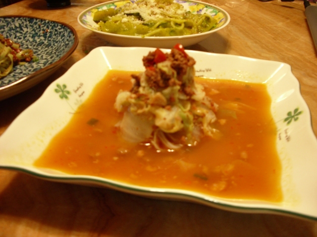 材料: 白菜數瓣, 肉醬1/3罐(又偷懶沒自己作), 蒜末,辣椒片,醬油少許