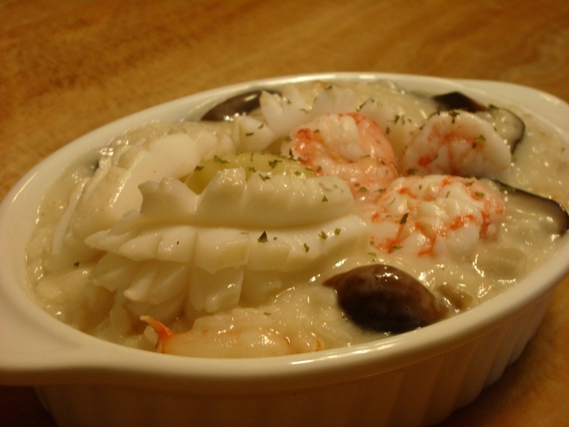 白米, 花枝, 白蝦, 干貝, 蟹腿仁,