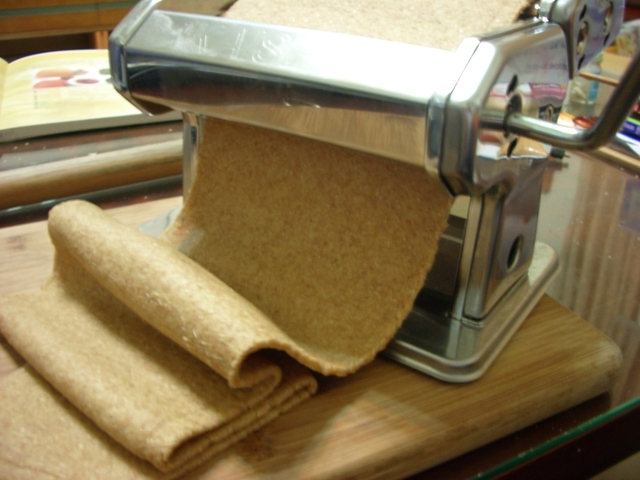 揉捏成光滑有彈性的麵糰,再用製麵機壓成片狀
