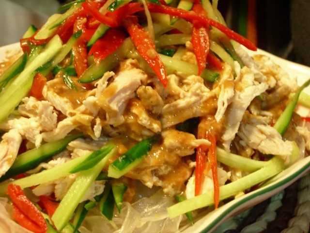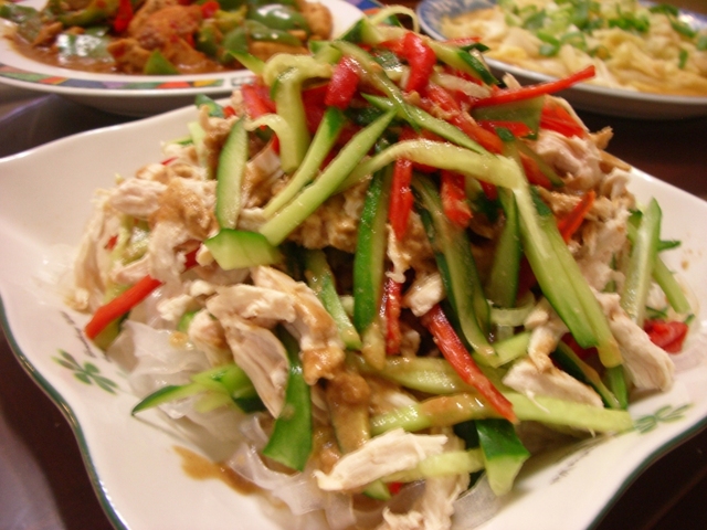 今天重作了棒棒雞絲,材料多加了粉條和辣椒絲,