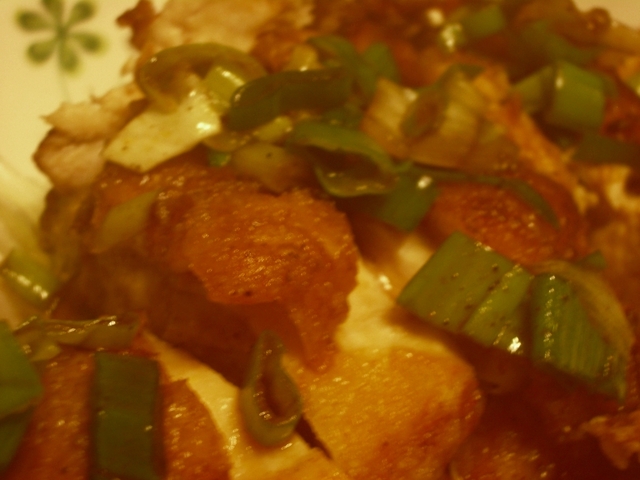 將雞胸肉兩面塗上地瓜粉!皮面朝下放入油鍋內~~~