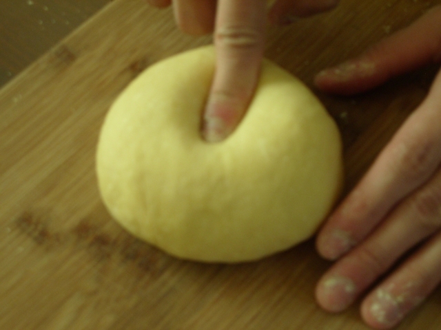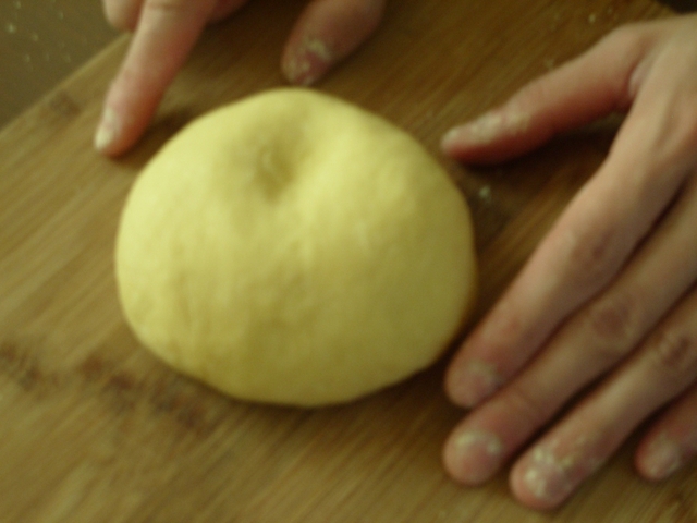 這次用180g的中筋麵粉和兩顆全蛋,一顆蛋黃揉捏成有彈性的麵糰,