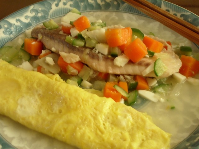 翻翻冰箱,還剩下一塊之前在賣場買的鯛魚,還有一點蔬菜丁和一顆蛋,