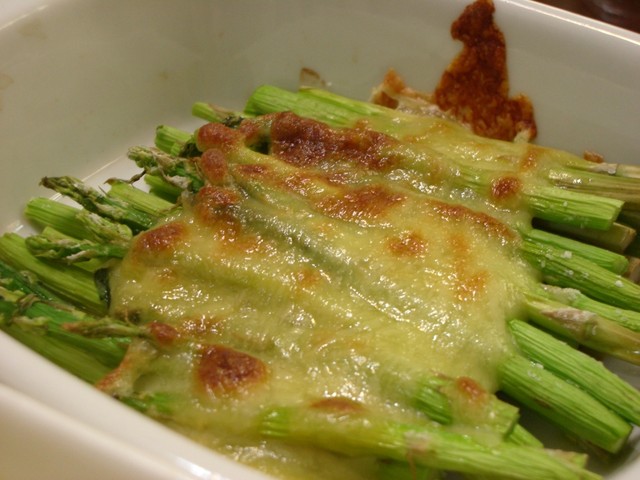 圖下 左: 焗烤蘆筍 右: 煎雞蛋豆腐