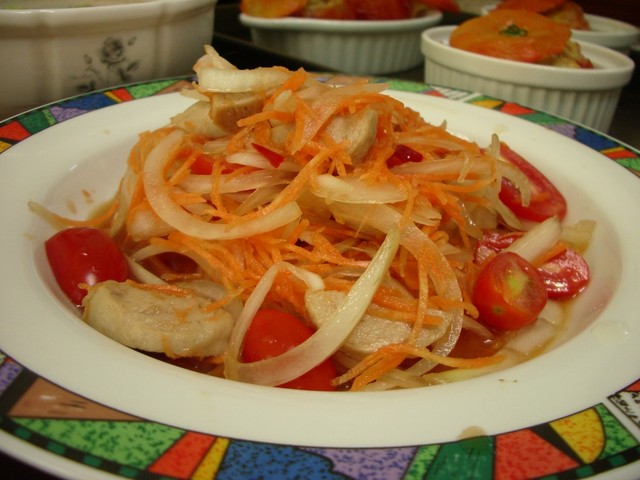 醬汁: 辣椒一根,醬油1/2匙,糖一大匙,檸檬汁兩匙,