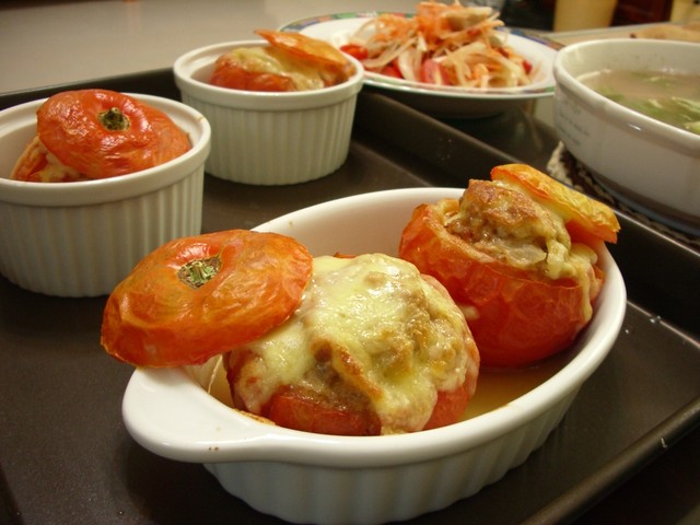 材料: 牛番茄,豬絞肉,起司絲,洋蔥,鹽,胡椒
