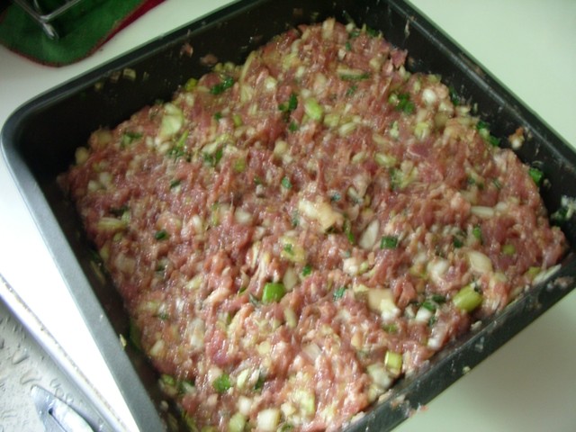 豬絞肉200g, 薑末兩小匙, 高麗菜末(加鹽去水)與豬絞肉同量,