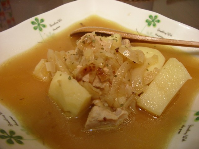 洋蔥半顆, 馬鈴薯一顆,豬背脊肉一塊,