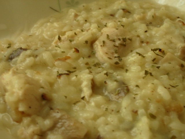 再加入鮮香菇,杏苞菇丁和雞里肌肉丁和煮到半熟的白飯,