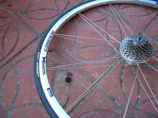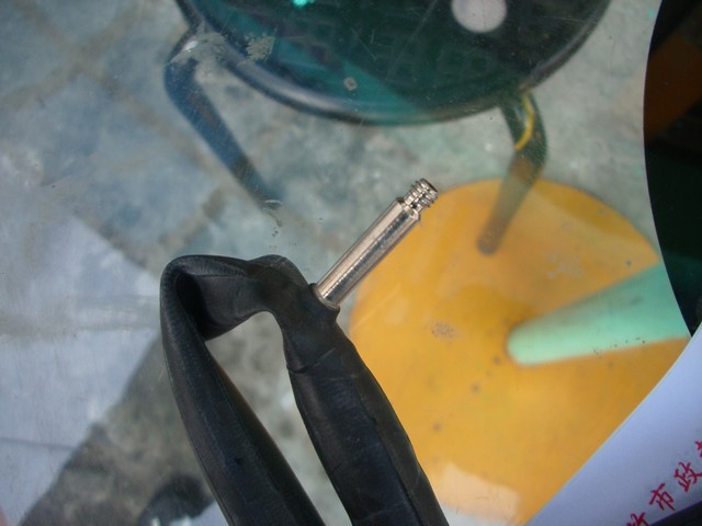 只好再把內胎裝回去打氣,卻不小心的把法式噴嘴弄壞了,