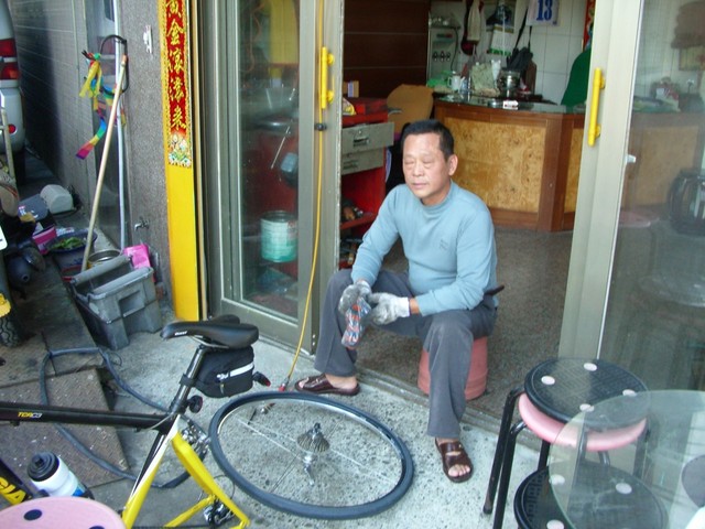 有一家開得很早的腳踏車店,弄了一個小時,買了兩條備胎,繼續上路!!!