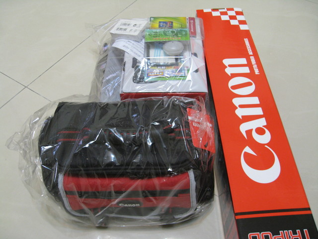 首先先介紹附贈得配件~~~大腳架,8G的SD卡,背包,清潔組,遙控器一應俱全~~~(只缺防潮箱)
