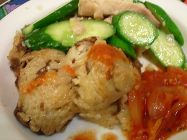 肉粽沾上冰冰涼涼的茄醬~口感很清爽!!再夾一口鹹水雞!真是一大享受!