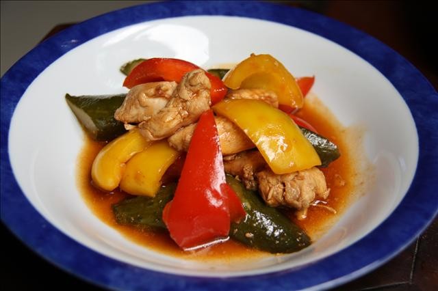 材料: 雞胸肉,小黃瓜,黃椒,紅椒,糖,蕃茄醬,醋,醬油
