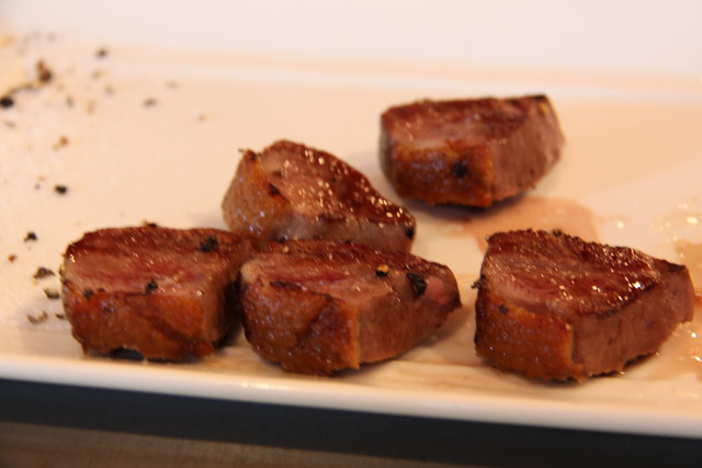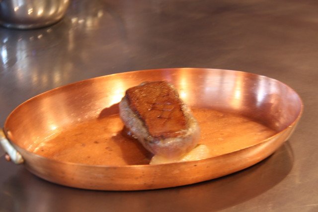 再切塊煎到八分熟!搭上用鴨油和蘋果酒煮成的SOUCE比牛小排好吃許多!!!