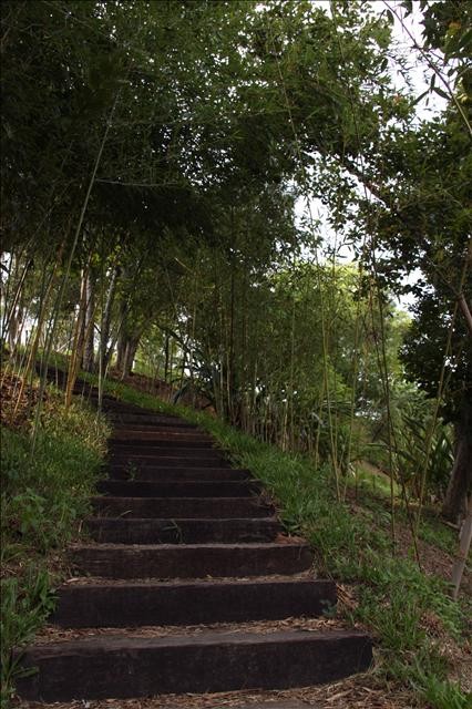 隨階而上到達月亮廣場.栽在山坡上的百合開得白曦高貴~