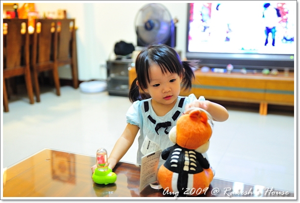 裘裘對從日本迪士尼回來的會發出恐怖笑聲的花栗鼠和會跳舞的派大星愛不釋手~