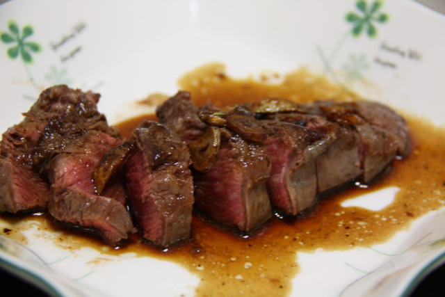 [三分熟嫩肩牛排佐香蒜日式醬汁]