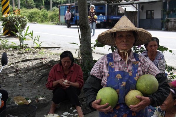 一個抱著碩大柚子的阿姨突然的站到鏡頭前,真是可愛,