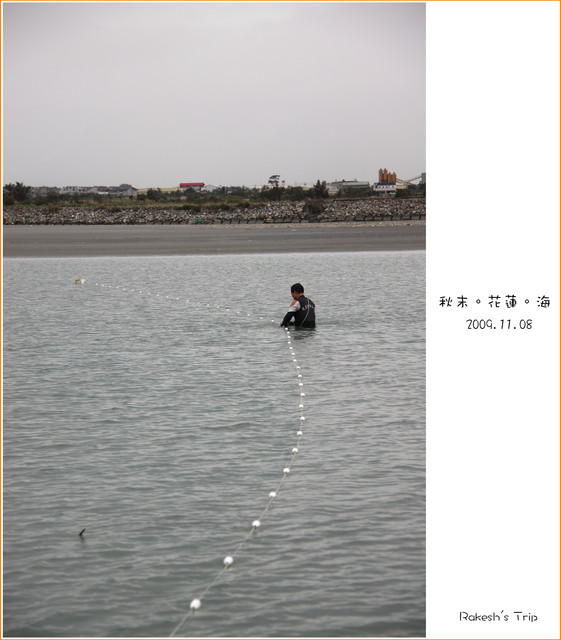 秋末花蓮的海,有種冷冽的美,為了生活還是有人在海裡撒網,