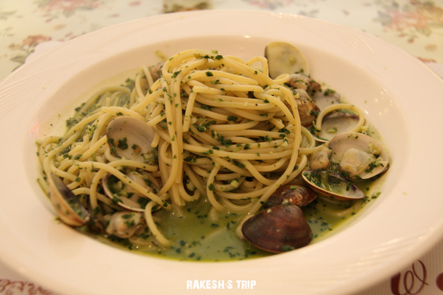 白酒蛤蠣義大利麵,有些湯湯水水,不過味道還滿道地的!