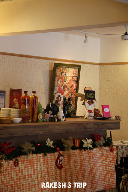 店裡的裝潢以紅黃等暖色系為基調,雖然有些地方有點俗套不過還滿溫暖的感覺!