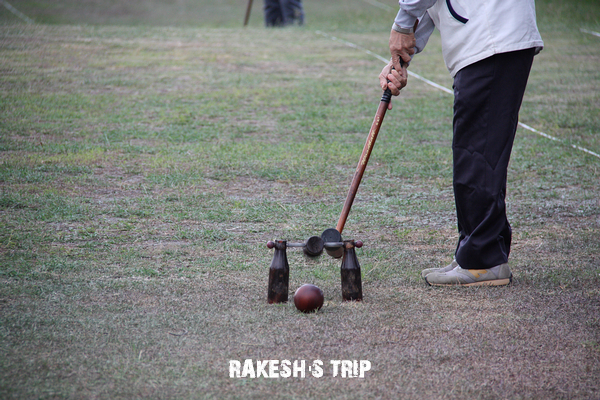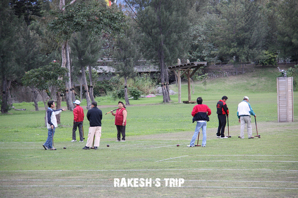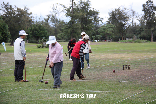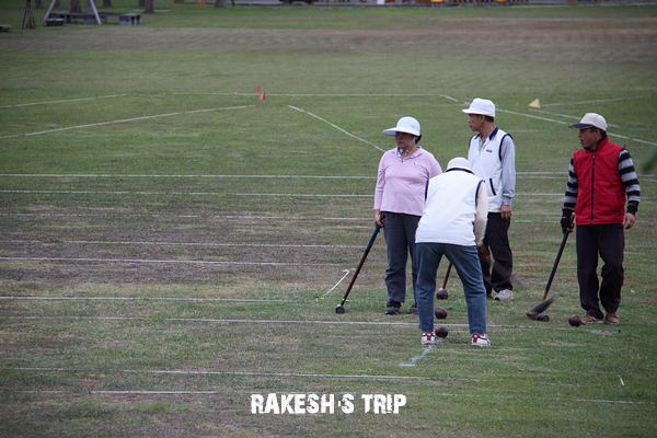 在台東市郊旁的一片大草地,看到一群阿伯阿姨在打槌球,