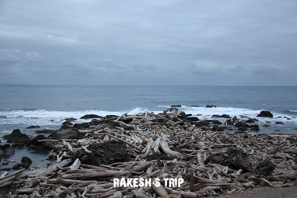 繼續往北騎,突然看到一堆漂流木,