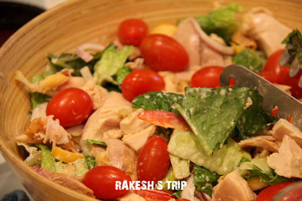 一隻雞的雞肉還扒了下來作成了裘麻的凱薩沙拉!