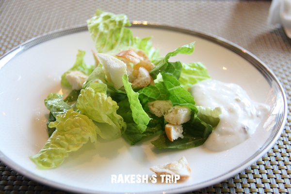 沙拉有田園沙拉佐和風醬或橙醬和凱薩沙拉~只有一種生菜感覺有點寒酸,