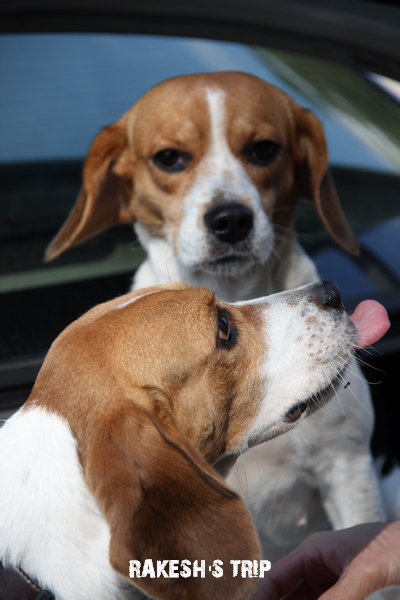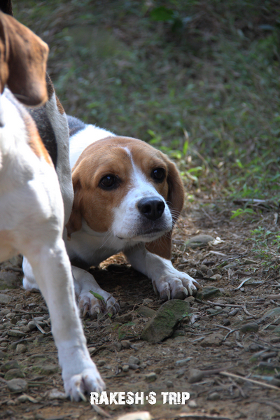 原來只是遇到了另一隻陌生的米格魯,看來是不同血統的,顏色有點差別!