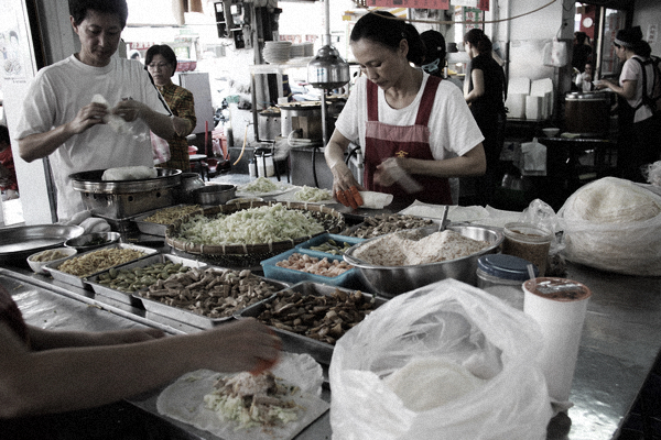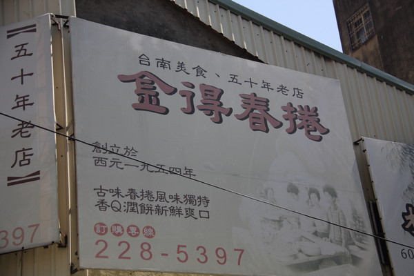 一到小吃街的巷口就看到大大的金得春捲的招牌,