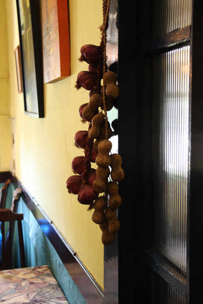 配餐的廚房有點小!店裡有不少很有古味的裝飾品,