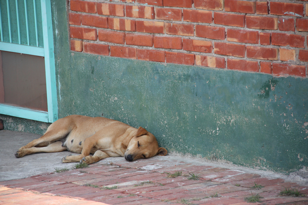 只剩下一隻小黃狗悠閒的睡著午覺!
