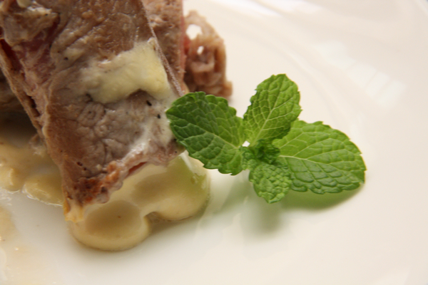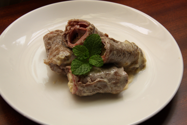 作法: 1. 用少許鹽(別太多,因為起司有鹹味),胡椒將肉片略醃