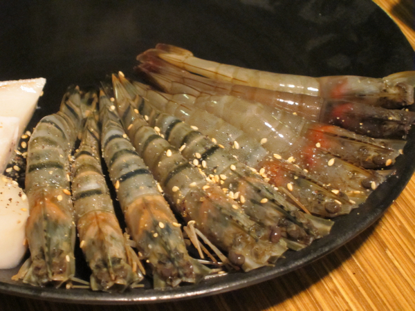 兩種蝦類!!!滿新鮮的!!還有其他的韓國烤飯之類的~不過普普!第一輪的菜上完了!