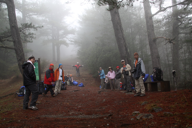 到空曠的地方大夥停下來做第一次的休息,第一天的早起就爬山真的還滿累的!