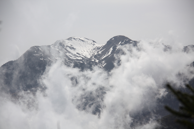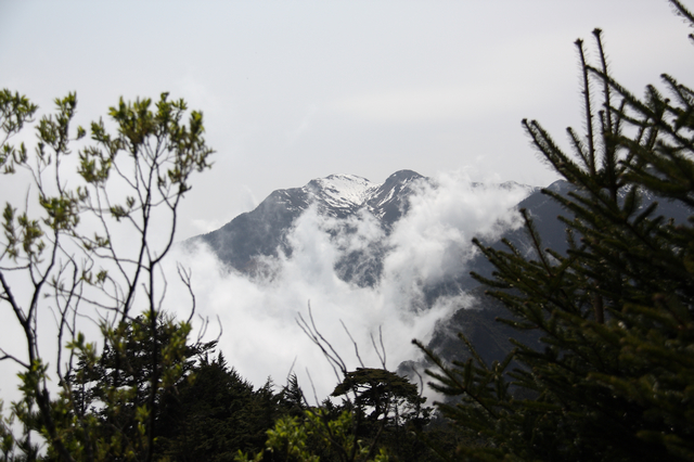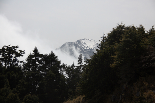 繼續走了好一陣子,終於在霧中看到了雪山的面貌!