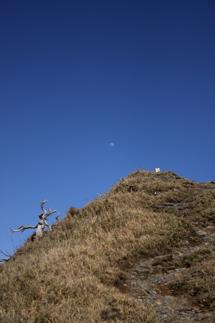 可惜再美還是要跟美景告別,月亮都出來了~要不趕快往桃山山屋前進,可能要摸黑走山路囉!
