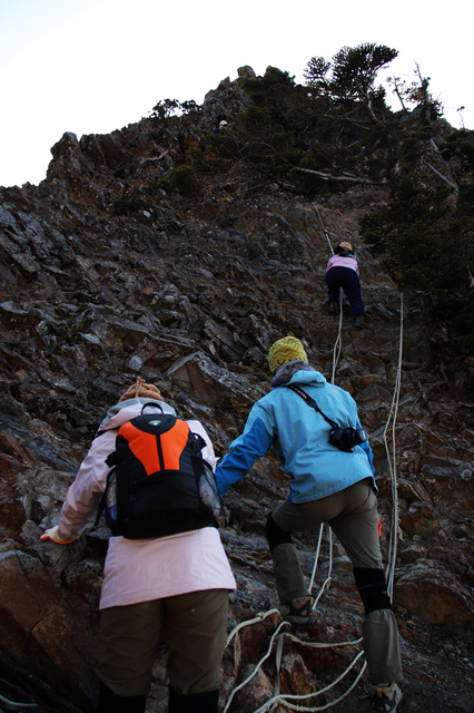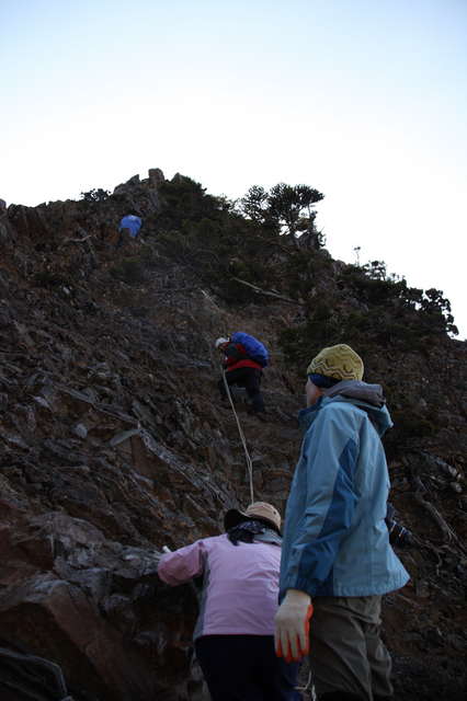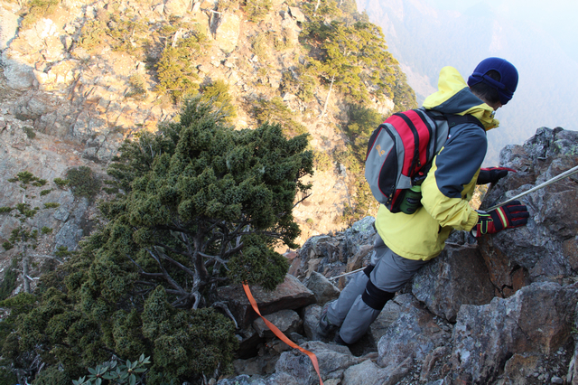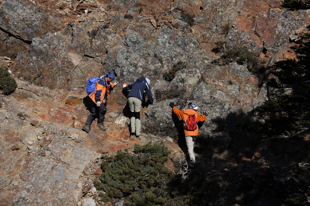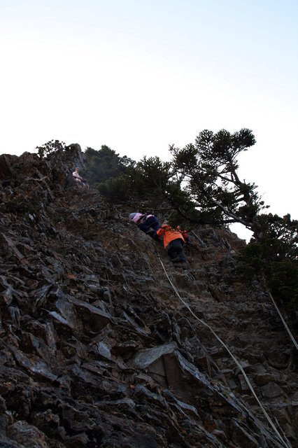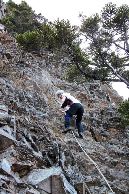 硬著頭皮搶先往下爬,嚮導在每一個位置指導著大家一步步扎實的往下爬!
