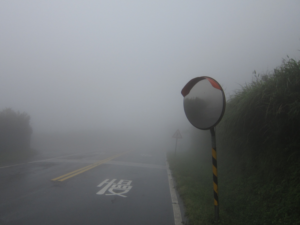 這樣不見五指又濕冷路滑的下坡騎車非常危險!