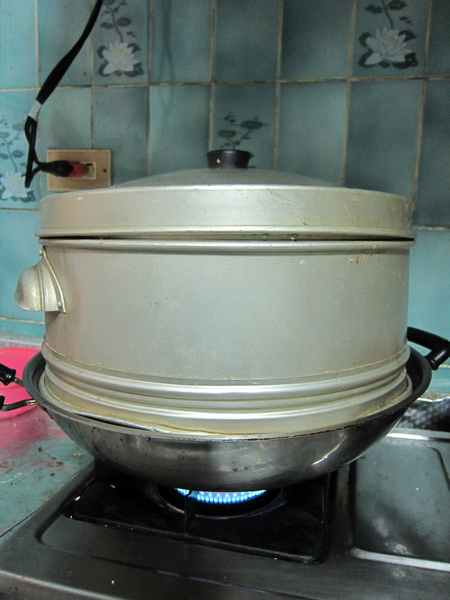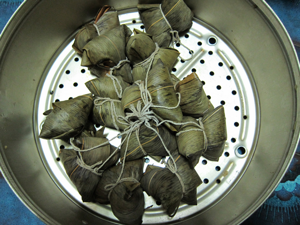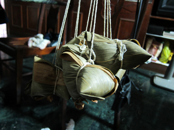 不過還是很遺憾的,包好的粽子不是被吊起來曬就是躺在蒸籠裡面蒸!