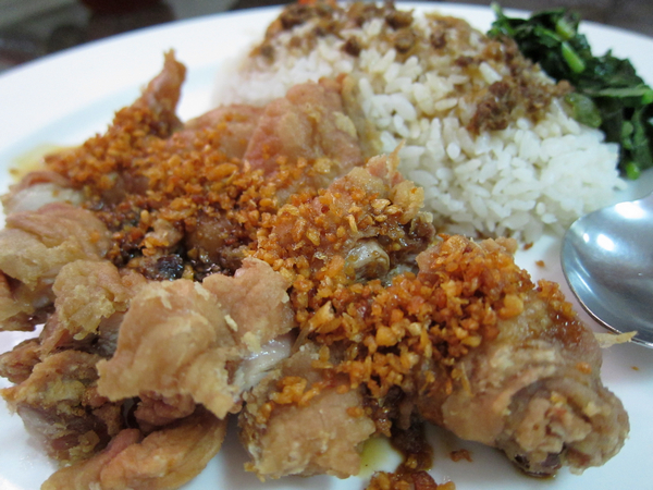 更別提這蒜香雞腿,裹上脆將酥炸在淋上炸蒜末和醬油,