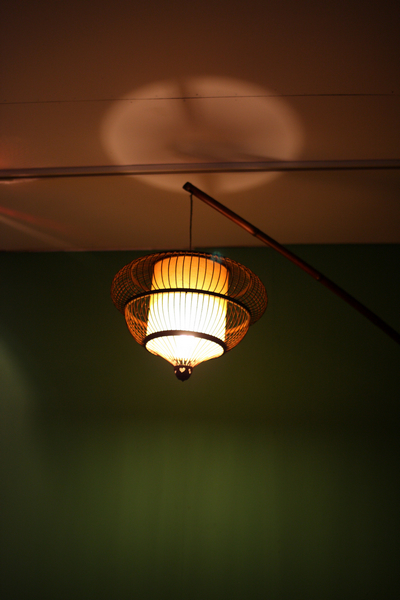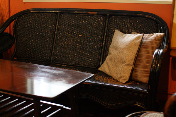 階梯旁邊的竹帘後傳來濃濃的杏仁香,