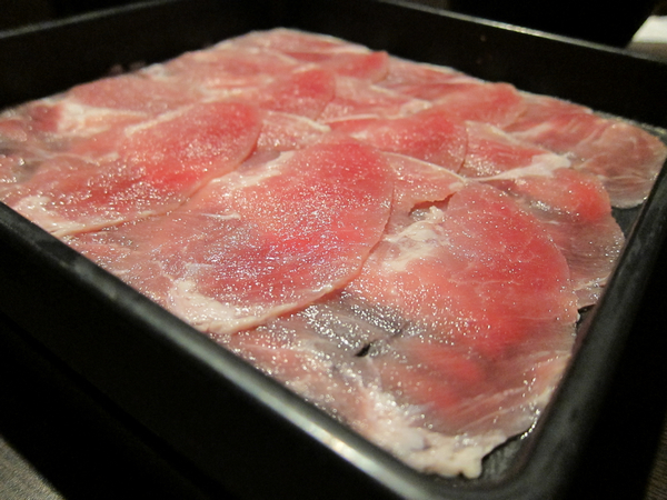 很少看到壽喜燒店會有帶骨的牛肉!