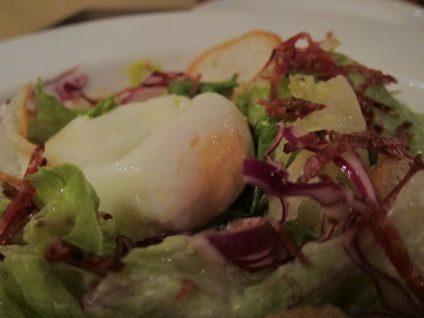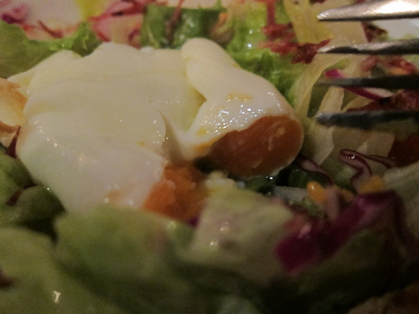 半熟的蛋撥散之後拌著生菜簡單好吃!