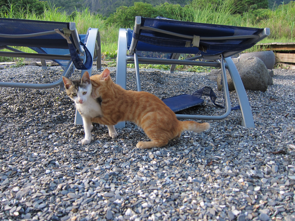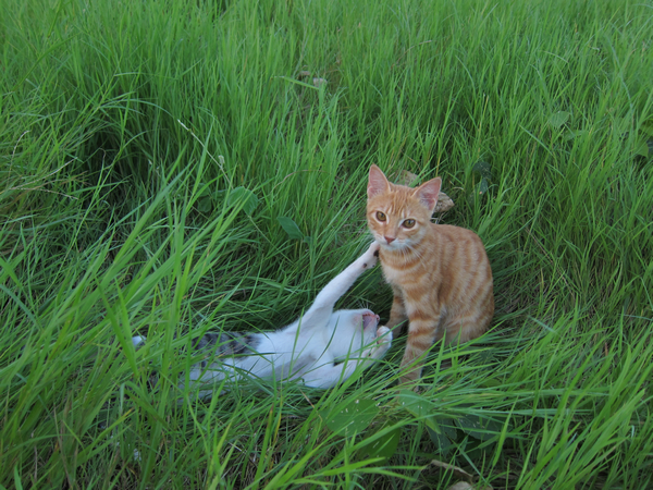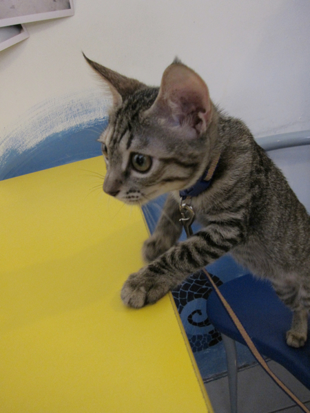 每隻貓的個性都不一樣,黃豆喜歡接近人,黑豆老是拒人千里!