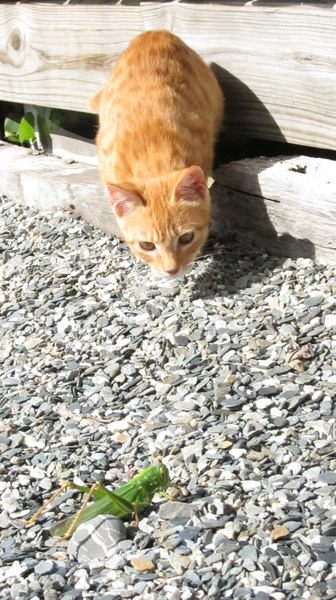 最後那隻蚱蜢被黃豆玩了好一陣子就被......